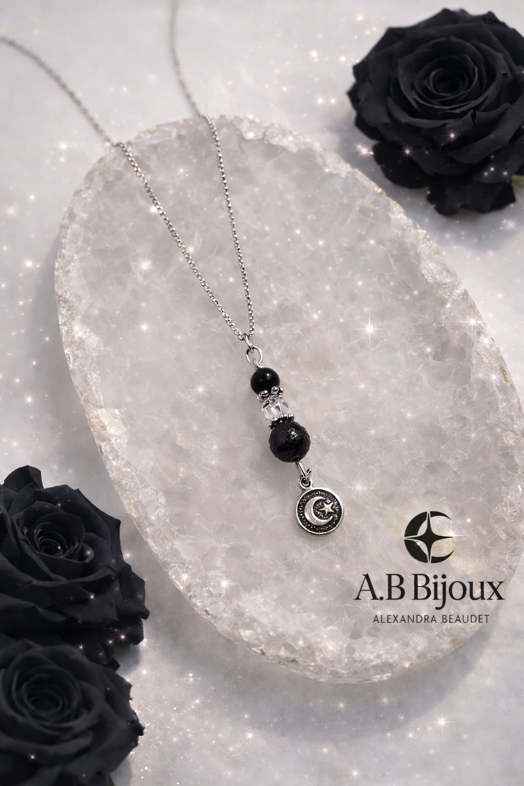 Un collier au style chic et intemporel, inspiré par la nuit, les étoiles et la force intérieure.